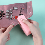 • Appuyez simplement sur le mini scellant pour aliments et tirez-le sur le sac pour créer un joint hermétique. Vous verrouillerez vos aliments/collations dans la fraîcheur et la saveur.
